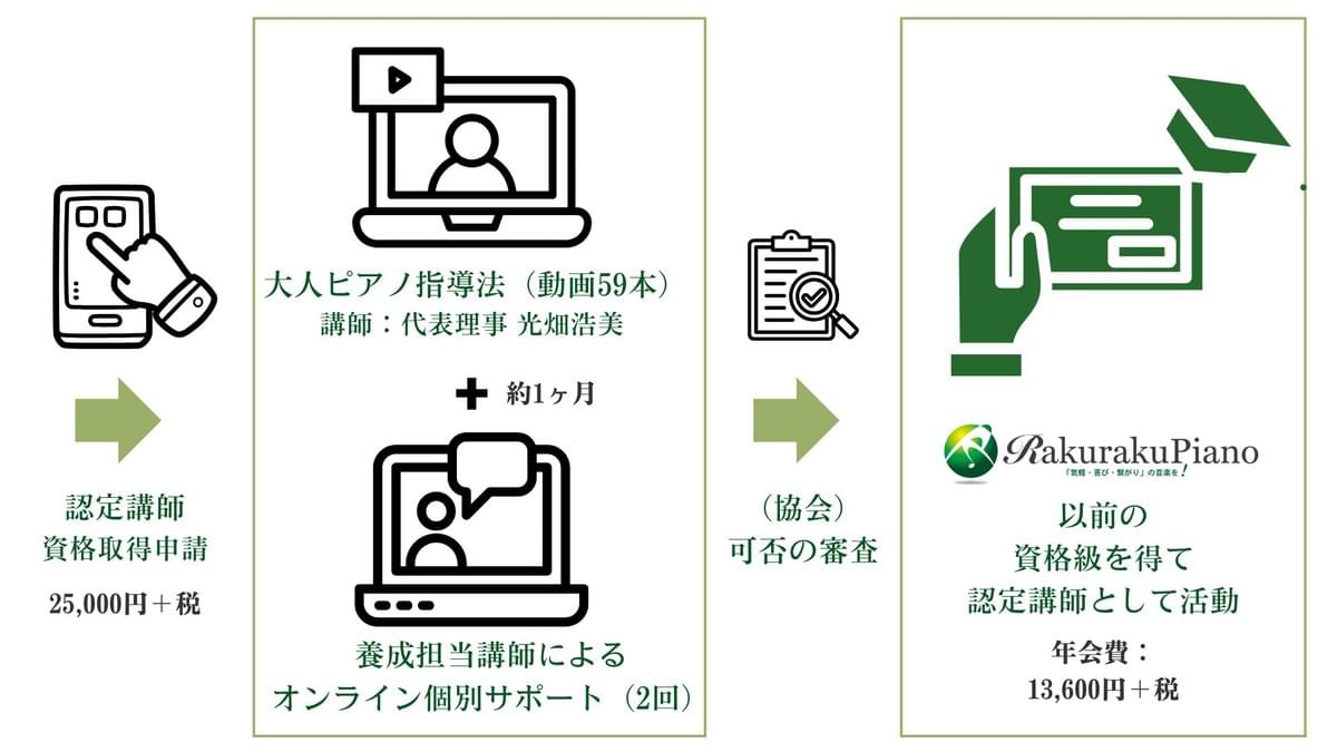 無事に審査を通過された場合、以前の資格級を保持したまま「らくらくピアノ認定講師」として活動を再開いただけます。復帰後は、年会費13,600円+税が必要です。(6ヶ月以内に手続きをして、活動スタート!)
